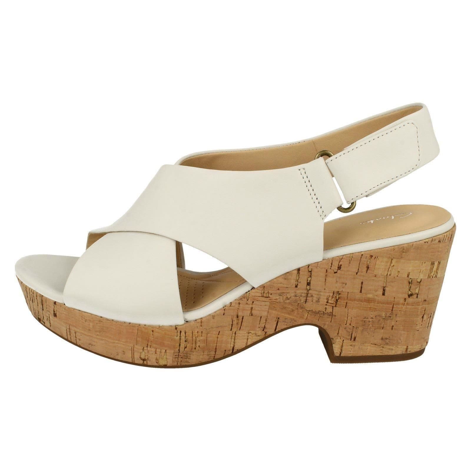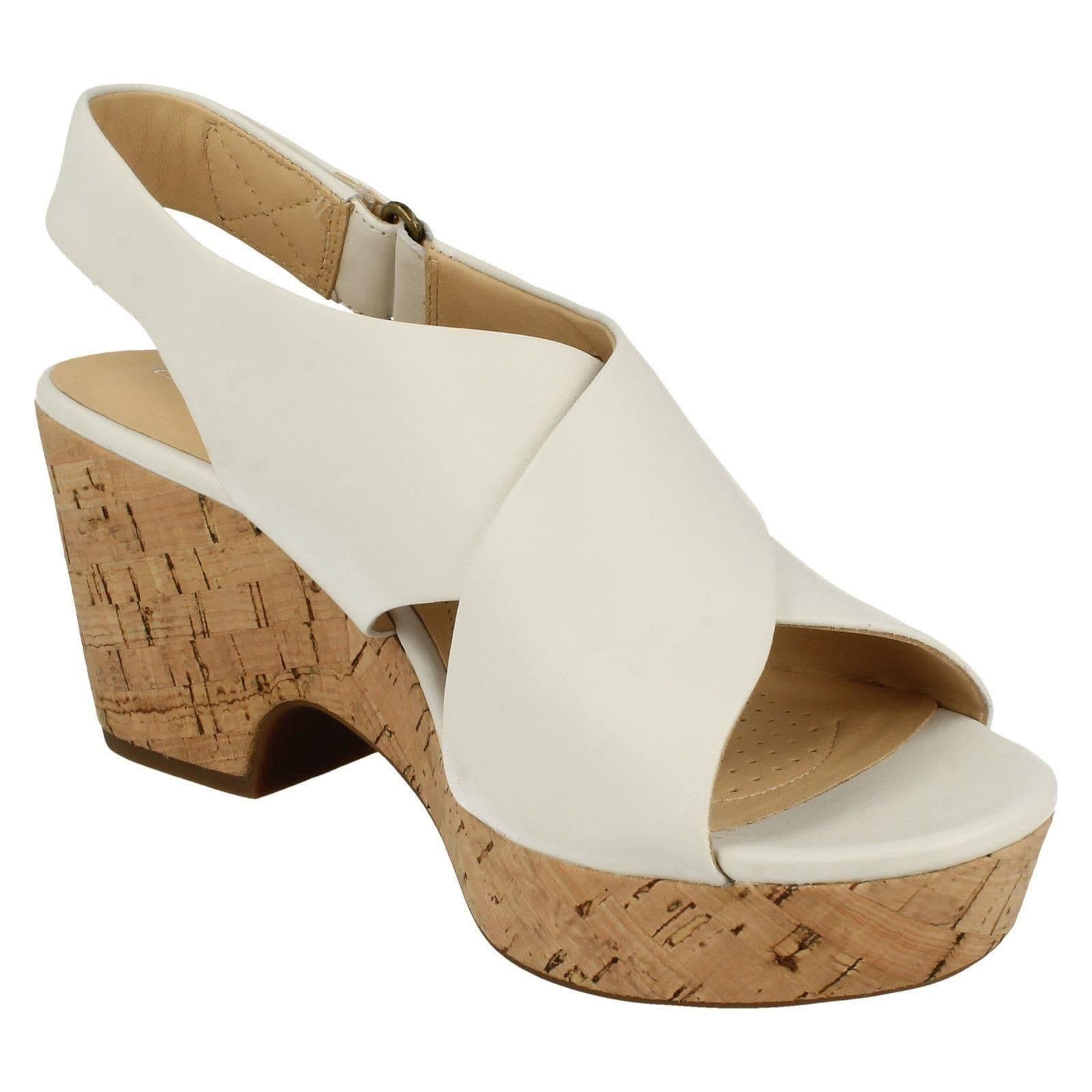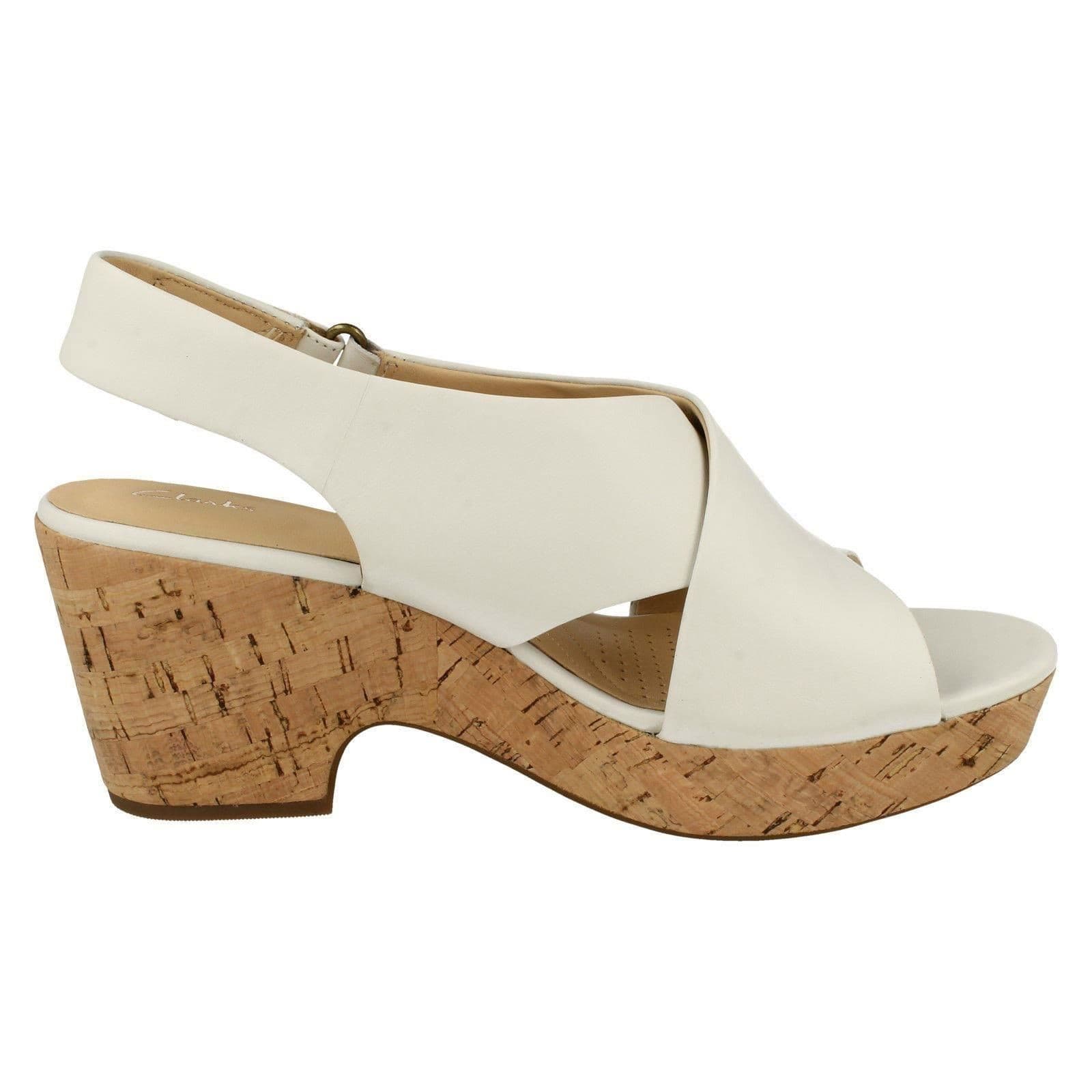 CLARKS Maritsa Lara sandali donna tacco plateau pelle bianco