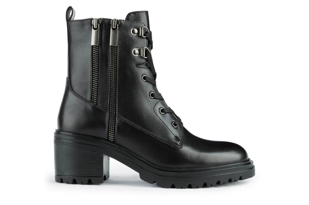 GEOX DAMIANA D26QCA anfibio stivaletti boots tacco nero pelle