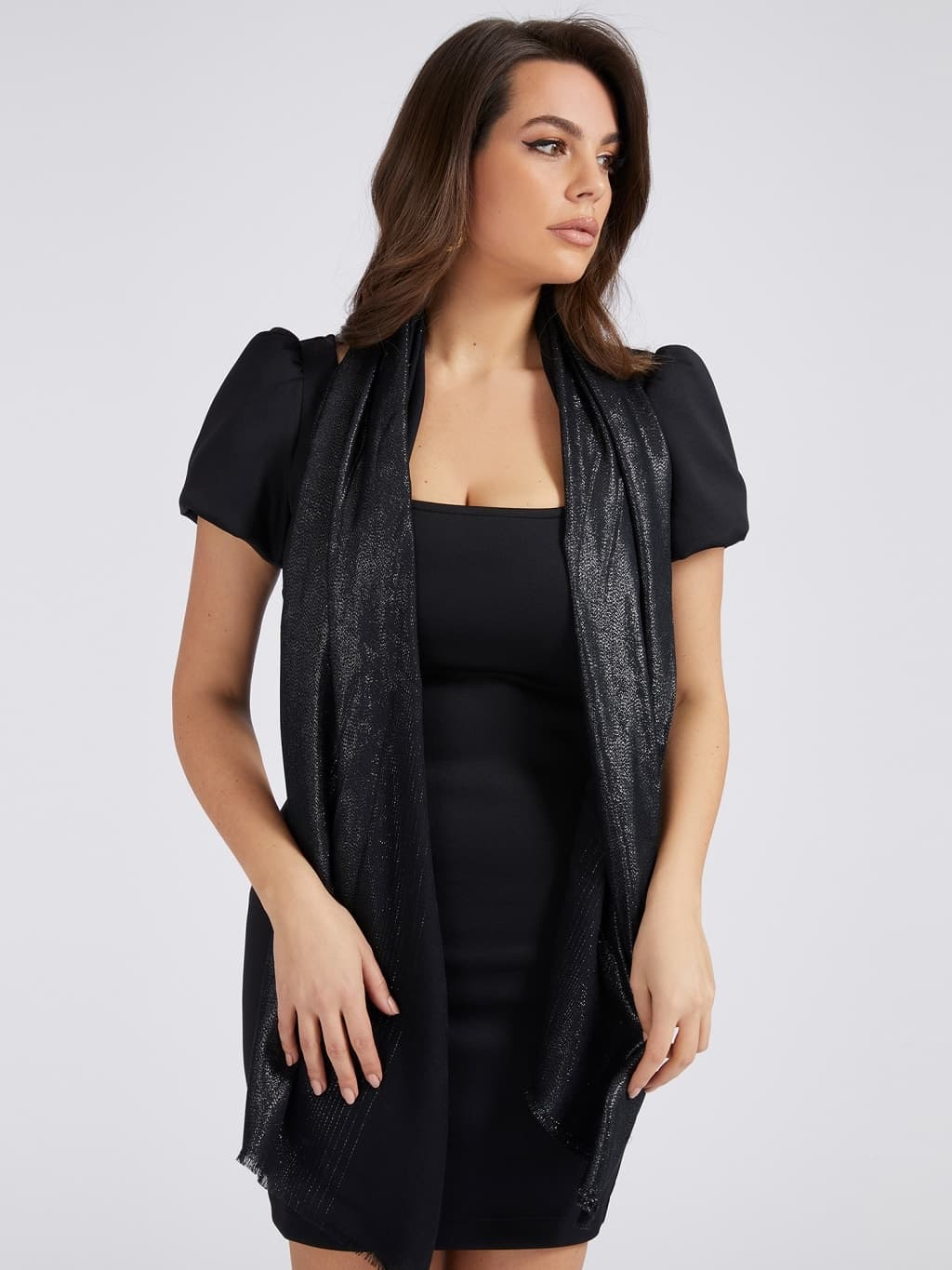 GUESS AW8578VIS03 sciarpa pashmina foulard donna nero lucido