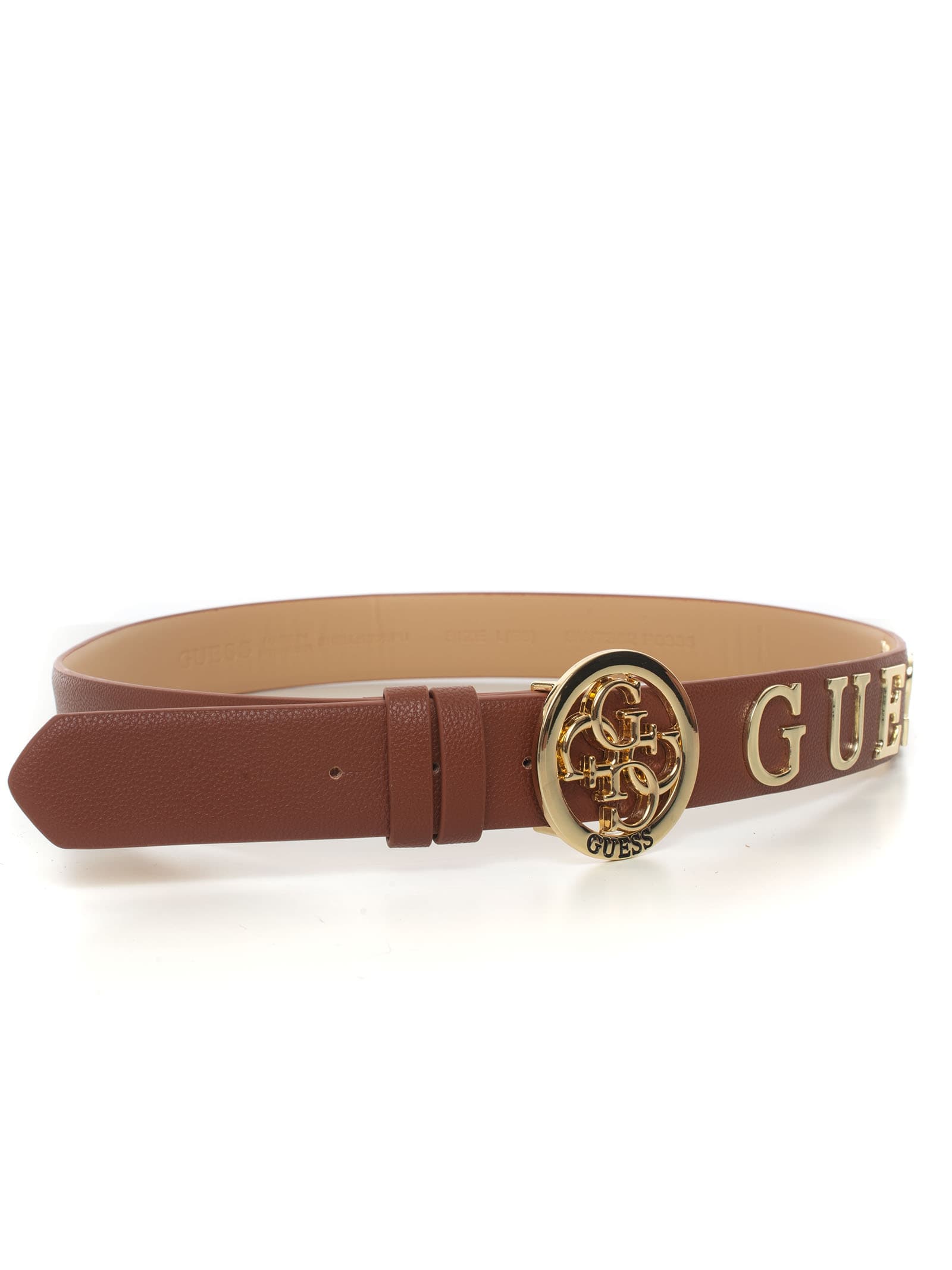 GUESS CINTURA DONNA COGNAC CON LOGO ORO