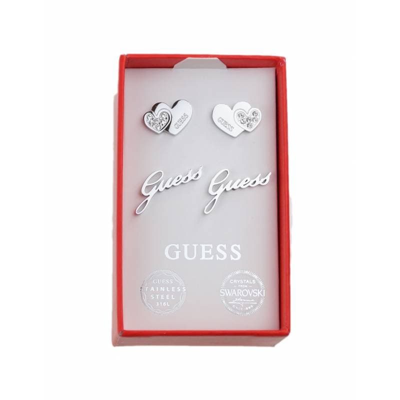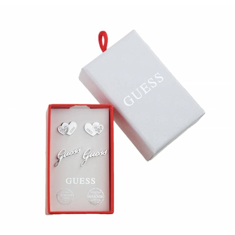 GUESS set di 2 orecchini cristalli Swarovski cuori e acciaio