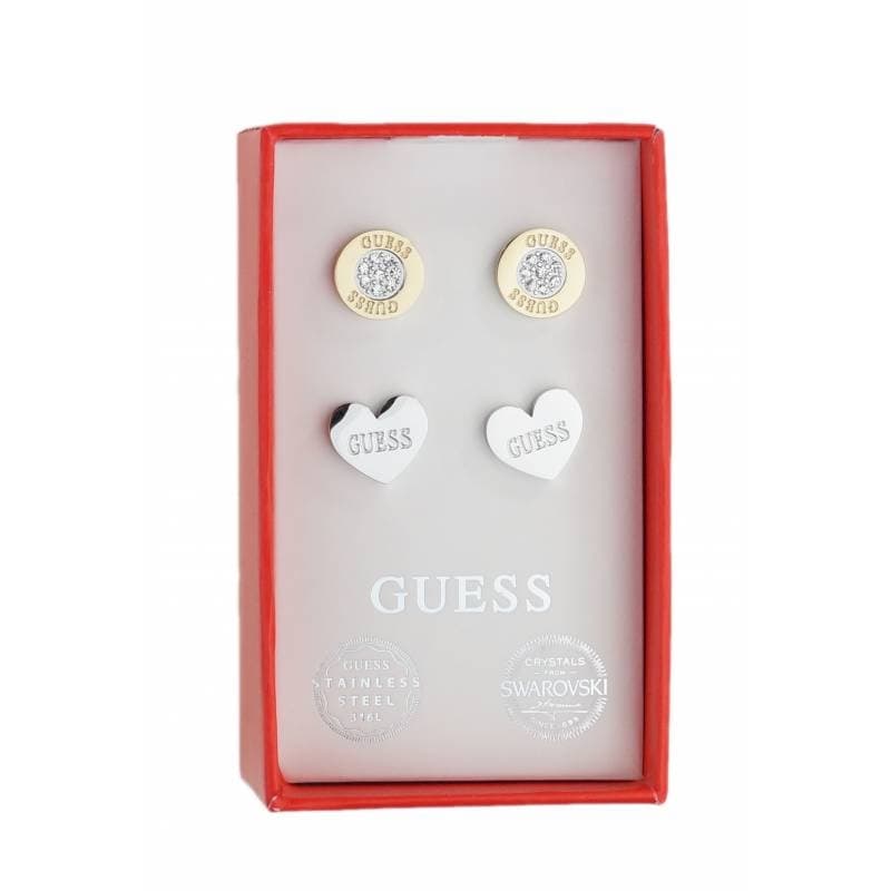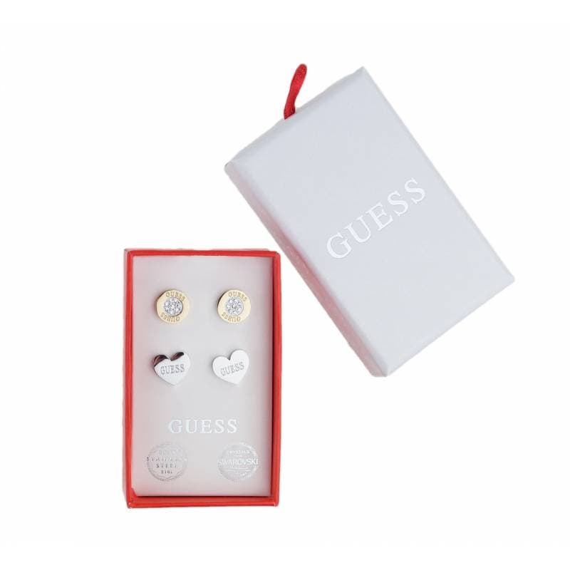 GUESS set di 2 orecchini cristalli Swarovski e acciaio cuore antiallergici