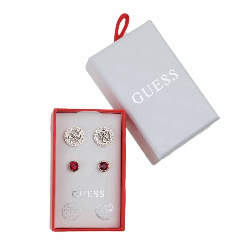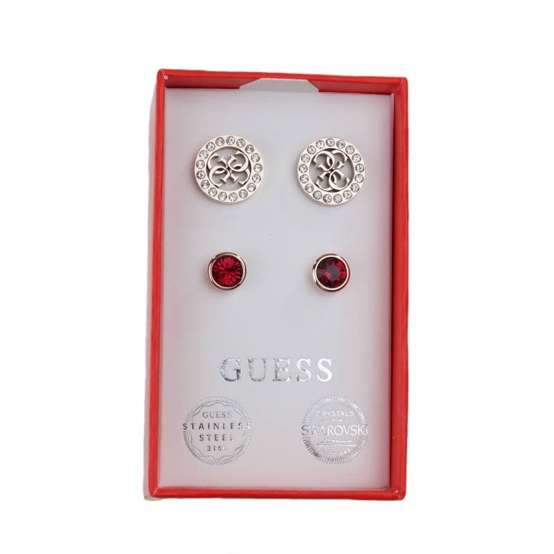 GUESS set di 2 orecchini cristalli Swarovski e acciaio rosso