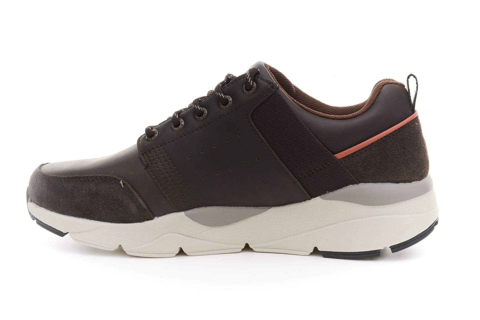Tomaia in morbida pelle e tessuto in maglia per una sneaker sportiva casual stringata con cuciture e sovrapposizioni. Accenti di cucitura. Bordatura colorata con bordi Constrast. Logo S laterale. . Collo e linguetta imbottiti. Fodera interna in morbido tessuto.